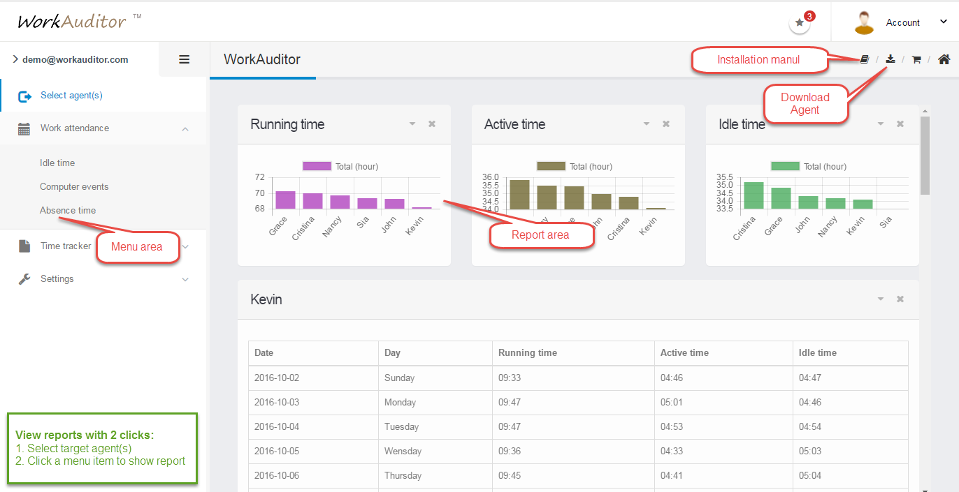 2.1 The WorkAuditor user interface is very clear ans easy to use as the image below.